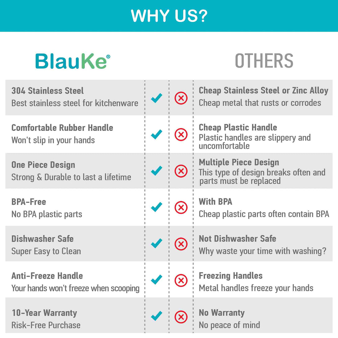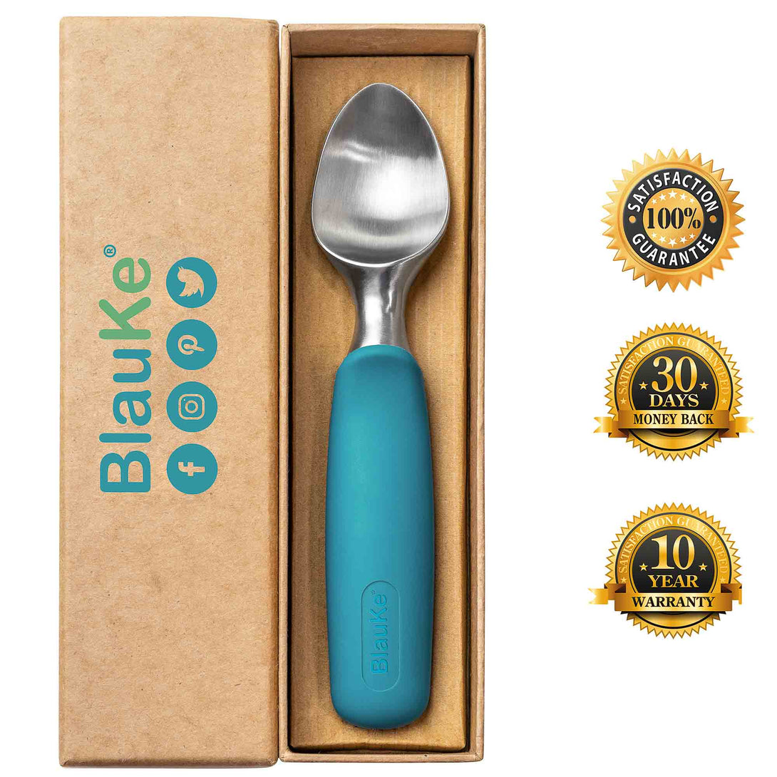 BlauKe® Stainless Steel Ice Cream Scoop – Professional Ice Cream Scooper with Comfortable Non-Slip Rubber Grip – Heavy Duty Dishwasher Safe Baller Scoop